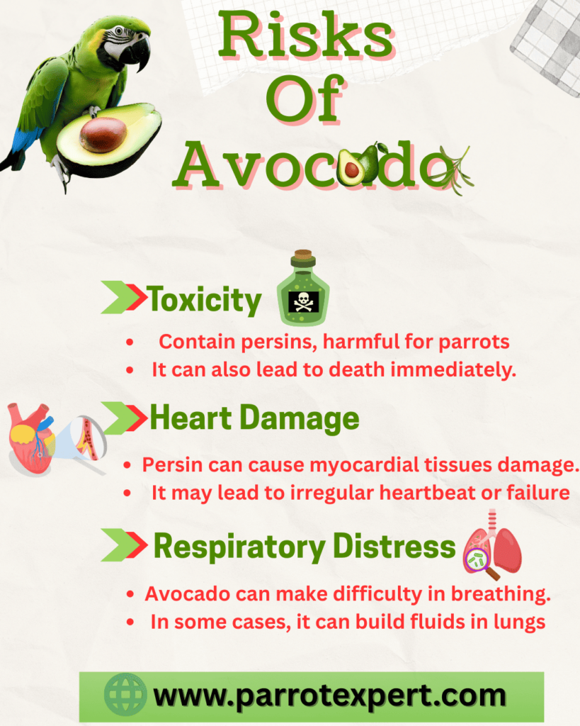 contains persin and is dangerous for parrots. Even avocado oil, made from the whole fruit, should be strictly avoided.